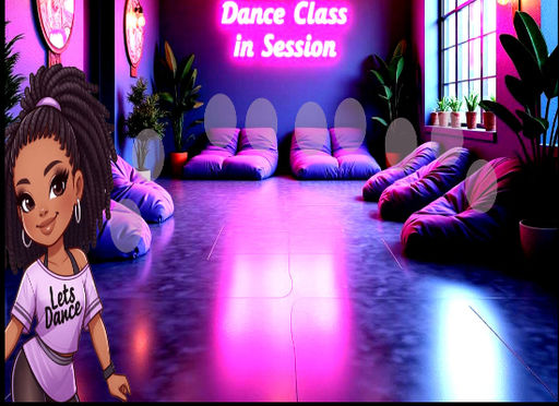 A vibrant, neon‑lit dance studio designed for movement, energy, and community. This room blends playful lighting, cozy seating, and character‑driven personality to create an inviting space for classes, events, and creative sessions. Part of a larger stacked room set, this featured view highlights my ability to design immersive, themed environments that feel modern, warm, and full of life.